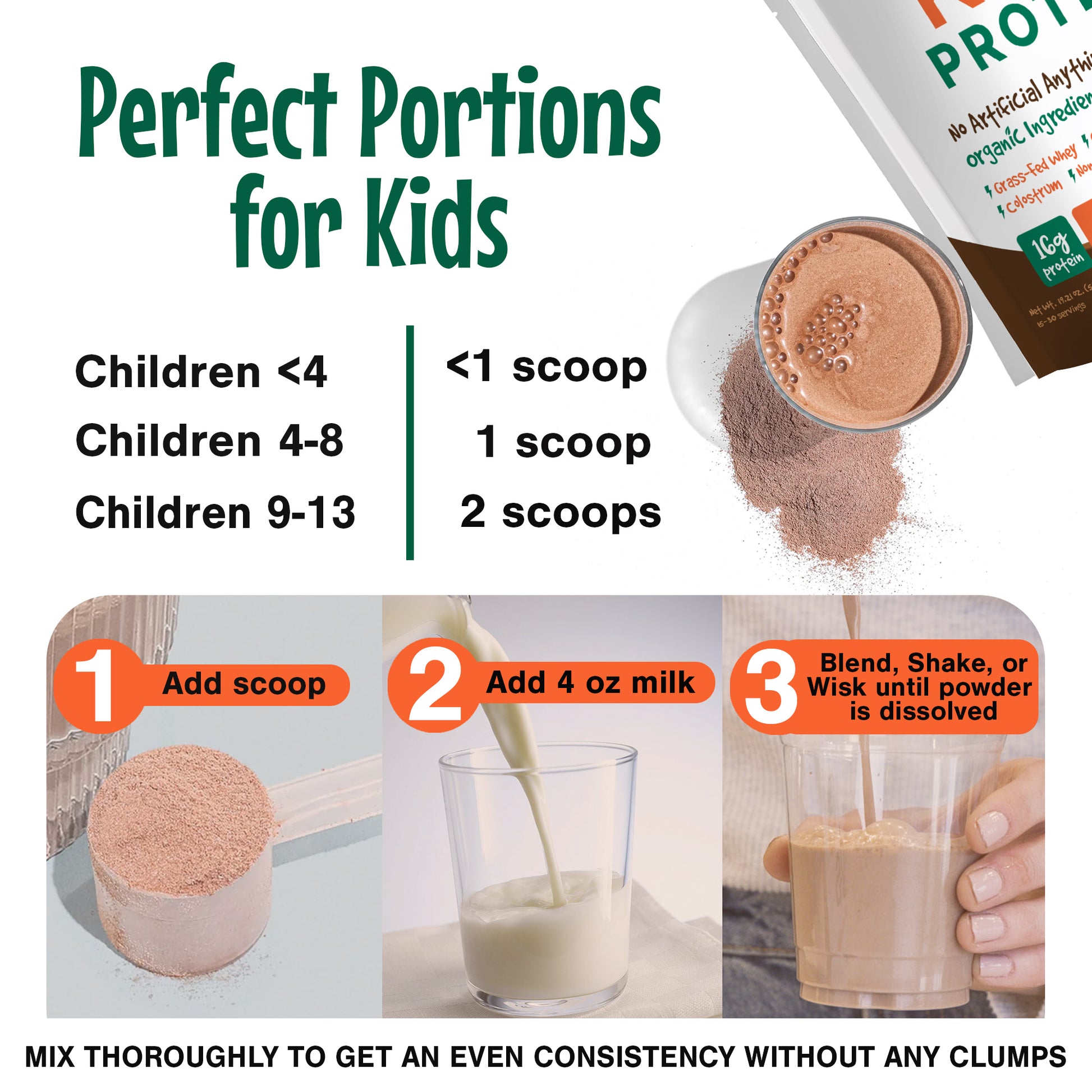 I had high hopes for this protein powder because I love that it's made with organic ingredients, grass-fed whey, and has no added sugar. The nutritional profile is solid, and I appreciate the added choline and calcium for brain and bone health. However, the sweetness was a deal-breaker for my kids.The chocolate flavor is definitely rich, but the combination of stevia and monk fruit makes it very sweet—almost too much. I tried mixing it with more milk than recommended, but the sweetness still overpowered the drink. My kids (ages 4 and 1) weren’t fans, though I can see this working better for older kids or those who prefer sweet drinks.On the plus side, it blends smoothly in a shaker bottle, no gritty texture or clumps, which is a big win compared to other protein powders I’ve tried. If your child enjoys sweeter drinks, this could be a great way to boost their protein intake. But if they’re sensitive to strong flavors, you may need to mix it with something like a smoothie to balance it out.